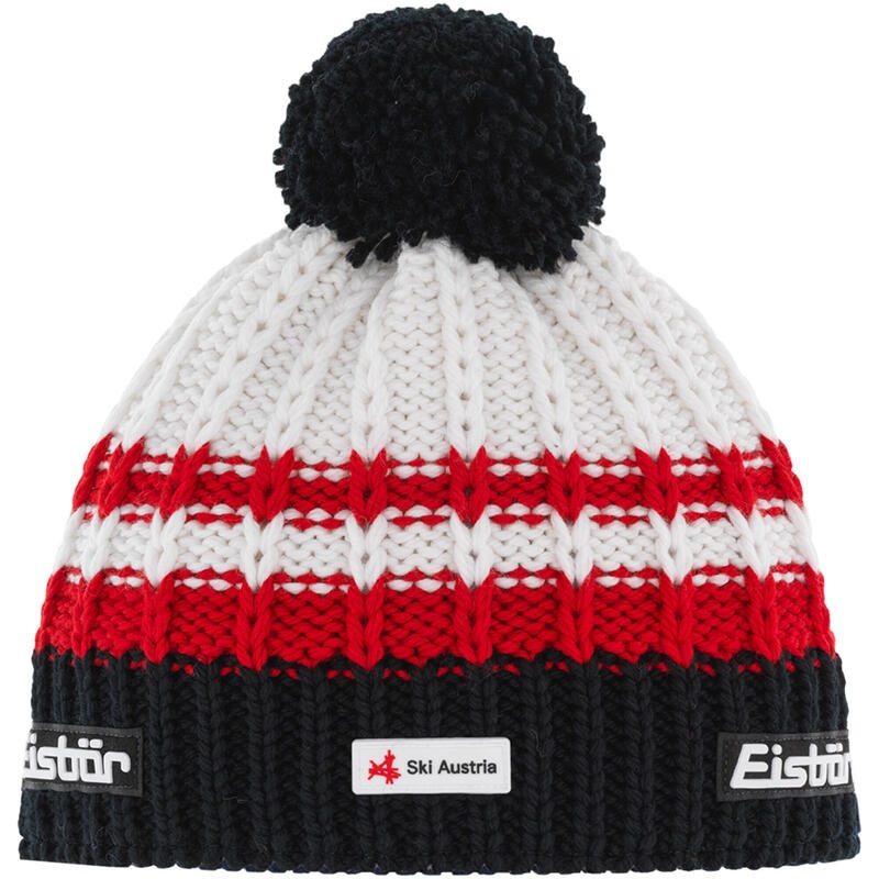 Směs merina (bez mulesingu) -Výrazné blokové pruhy v kontrastních barvách -Nadýchaný vlněný pompon -Ski Austria logo -Vnitřní fleecový lem z recyklovaného polyesteru pro větší hřejivost Tato čepice kombinuje hrubé pletené blokové pruhy ve výrazných kontrastních barvách s nadýchaným vlněným pomponem, což podtrhuje její sportovní vzhled. Je doplněna o Ski Austria logo a díky tomu oblíbená zejména mezi fanoušky lyžařských sportů. Směs materiálů 50/50 z merino vlny bez mulesingu a polyakrylu zajišťuje vynikající izolaci při nízkých teplotách a vysokou prodyšnost. Vnitřní lem ze 100% recyklovaného příjemného fleecu vás udrží v teple i v těch nejchladnějších dnech. K dostání také jako čepice Kova Pompon.