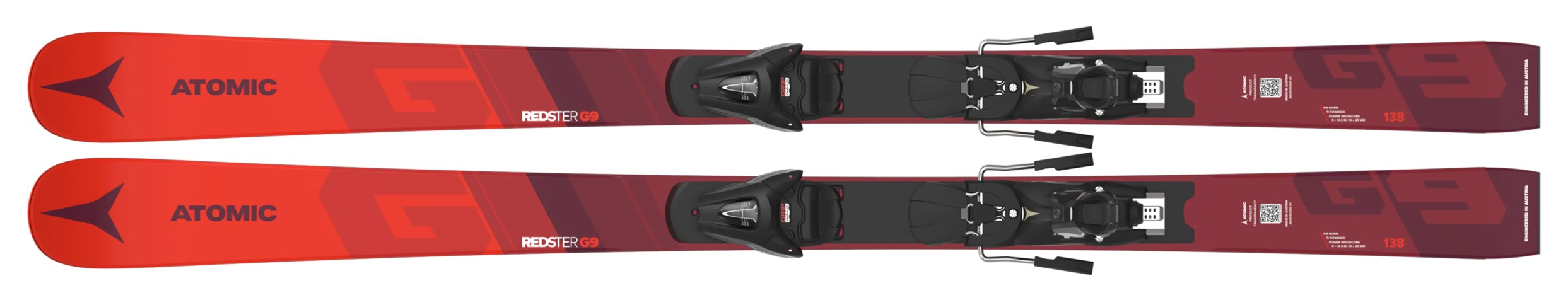 Model Atomic Redster G9 FIS J‑RP³ je určen pro mladé závodníky v obřím slalomu. Splňuje všechny nejnovější standardy FIS a je speciálně navržen pro dlouhé a rychlé oblouky. Má konstrukci Dura Cap Sidewal pro spolehlivé držení lyže na hraně, a to zejména tehdy, když jde do tuhého. Lyže mají nižší špičku a patu a takový poloměr zatáčení, který umožňuje mladým lyžařům snadné překlápění hran bez velké námahy. Kombinací dřevěného jádra Power Woodcore a dvou vrstev titanalu Ultra TI Powered pod jádrem vzniká vyvážená flexe zaručující účinný přenos síly na hrany během jízdy. Lyže Redster G9 FIS J‑RP³ posouvají mladé závodníky na novou úroveň lyžování.