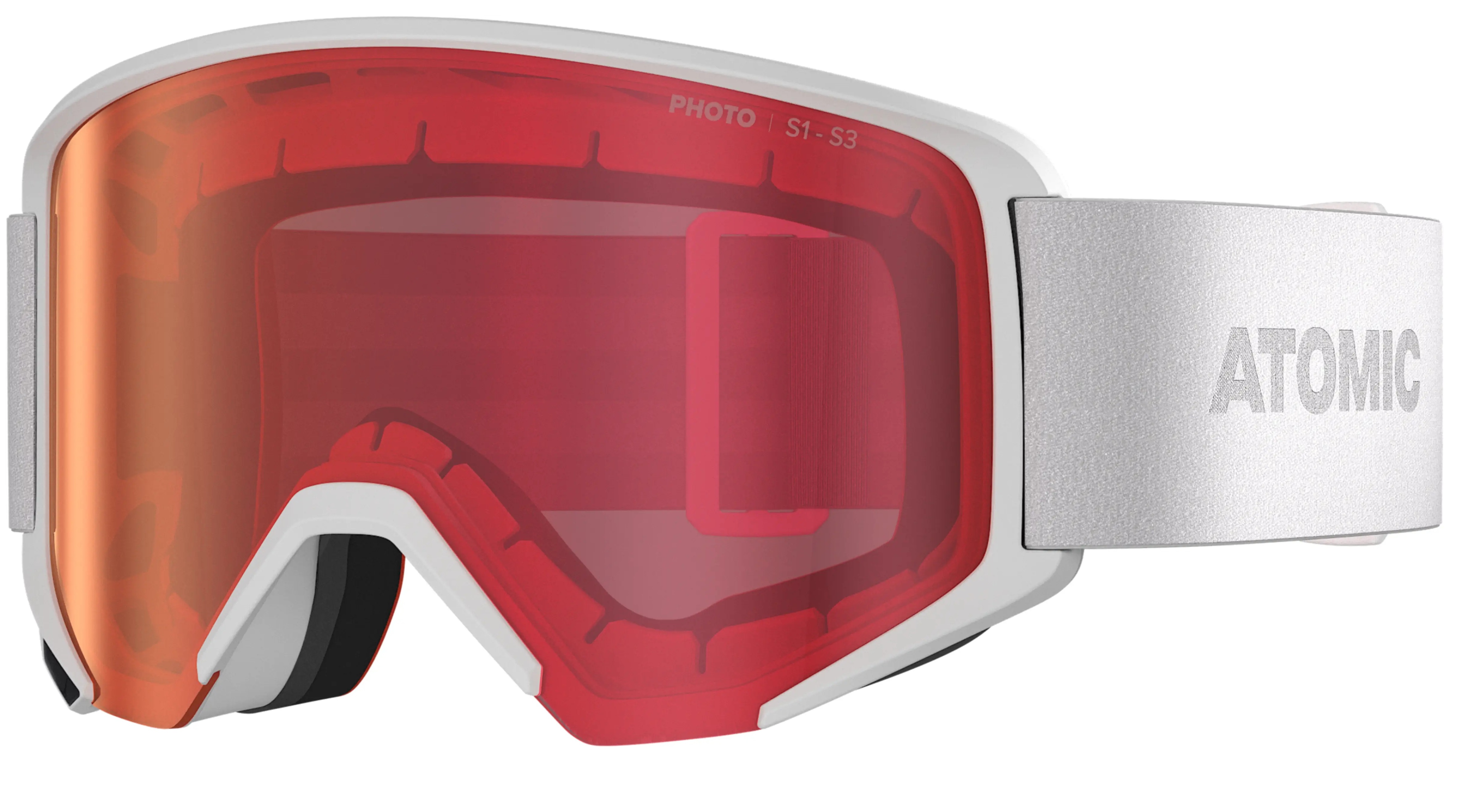 Lyžařské brýle Atomic Savor L Photo mají cylindrický fotochromatický zorník, který automaticky reaguje na měnící se světelné podmínky.